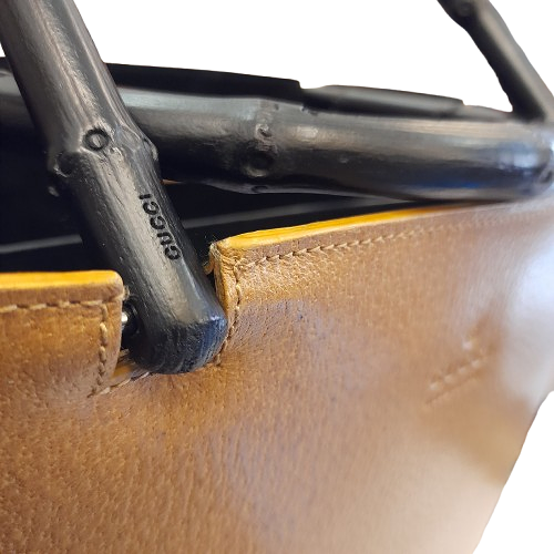 Questa è una magnifica borsa Gucci Bambù Shopper Tote, un modello che incarna l'artigianalità e la storia della Maison fiorentina. La linea Bambù da cui prende il nome, è leggendaria: risale al 1947 e si distingue per i manici unici in bambù, forgiati sapientemente sulla fiamma viva, un dettaglio che conferisce un tocco inconfondibile di pregio e tradizione.
