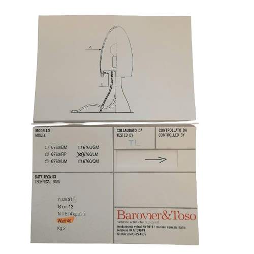 Questa è una splendida lampada da tavolo attribuibile alla rinomata manifattura di Barovier & Toso, un'icona dell'arte vetraria di Murano, e viene fornita con l'importante certificato di autenticità a garanzia della sua provenienza e dell'eccellenza artigianale.