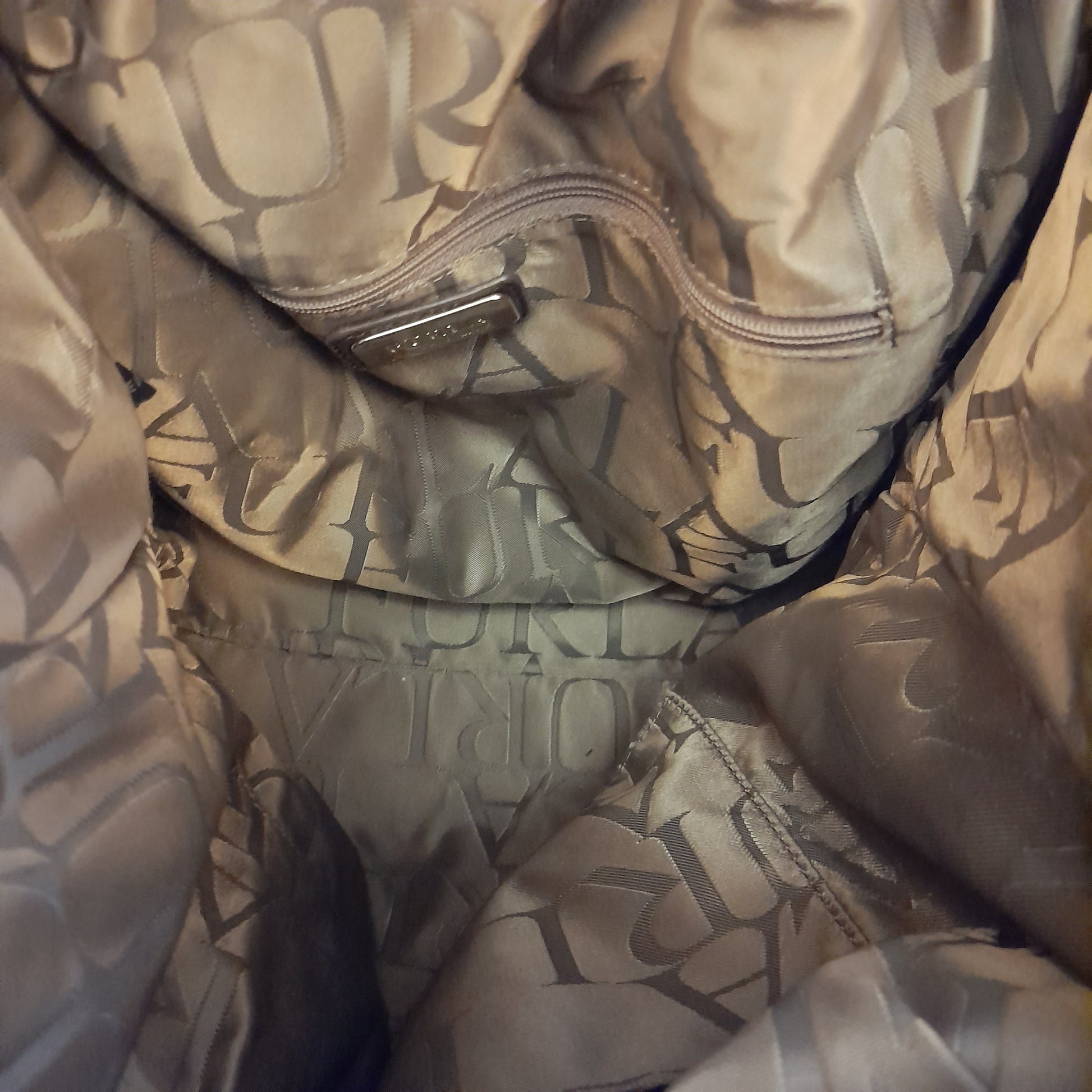Una borsa Furla in morbida pelle, caratterizzata da una silhouette hobo che unisce eleganza e praticità quotidiana. La sua distintiva colorazione gioca sulle tonalità neutre, accostando un caldo beige chiaro per il corpo principale, con dettagli e manici in marrone scuro, creando un piacevole effetto bicolore.