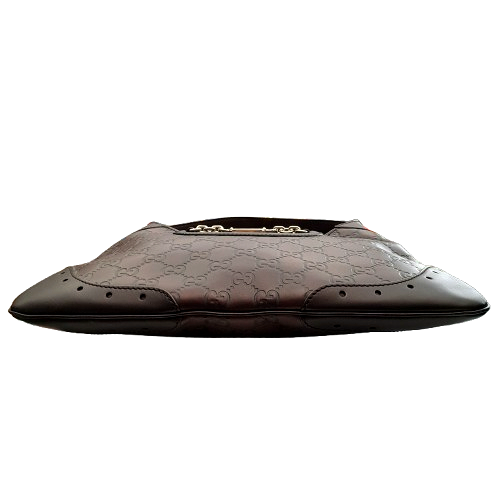 Eleva il tuo stile con questa splendida borsa a spalla Gucci, un pezzo iconico che unisce eleganza e funzionalità. Realizzata in pregiata pelle Guccissima in una ricca tonalità marrone cioccolato la borsa presenta il celebre monogramma GG impresso su tutta la superficie, simbolo inconfondibile di lusso e artigianalità italiana. La borsa è rifinita con una chiusura a moschettone e una distintiva placca color oro con la firma Gucci incisa.