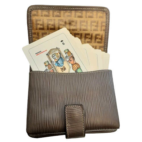 Un'assoluta rarità dal mondo Fendi, questo porta Tarocchi vintage unisce l'alta moda a una tradizione millenaria. Realizzato con l'iconica tela logo Fendi e rifinito in pelle con una trama Saffiano, questo accessorio non è solo un contenitore, ma un pezzo di storia del design. Progettato specificamente per custodire e proteggere un mazzo di tarocchi, unisce il lusso discreto e la maestria artigianale che contraddistinguono la casa di moda romana. Perfetto per collezionisti o per chiunque voglia unire stile e spiritualità, è un oggetto da tramandare che aggiunge un tocco di esclusività a ogni rituale e a ogni giorno.