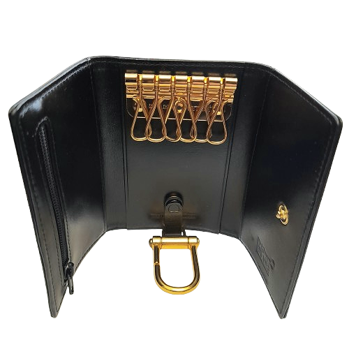 Eleganza e funzionalità si fondono in questo portachiavi Montblanc. Realizzato in pregiata pelle nera, offre sei ganci per chiavi in metallo dorato, un anello a D per chiavi auto e una pratica tasca laterale con cerniera. Un accessorio compatto e raffinato che mantiene tutto organizzato con stile. Il celebre logo a stella bianca Montblanc completa il design, garantendo qualità e lusso senza tempo.