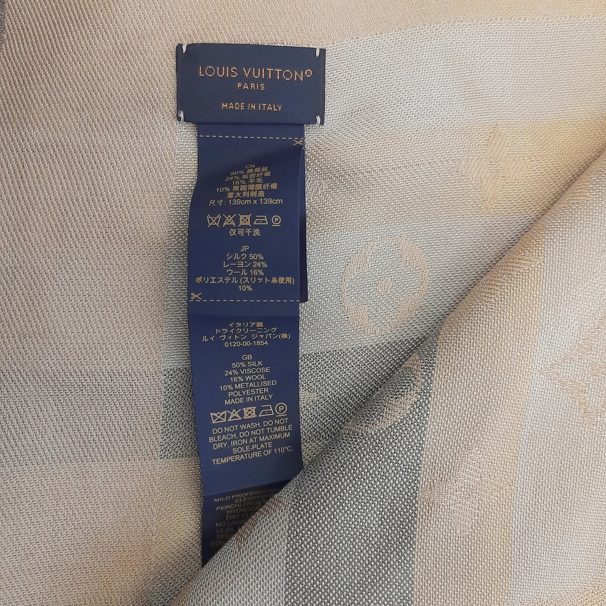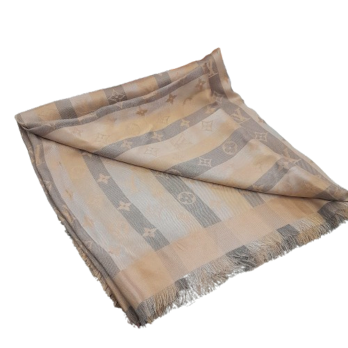 Questo foulard/sciarpa/ grande di Louis Vuitton, in una preziosa miscela di seta, lana e viscosa, unisce l'eleganza a una morbidezza eccezionale. Il design presenta il motivo Monogram tono su tono, alternato a bande verticali con l'iconico pattern, creando un contrasto discreto e raffinato. Questo accessorio, avvolgente e leggero, è perfetto per ogni stagione, aggiungendo un tocco di lusso e versatilità a ogni outfit.